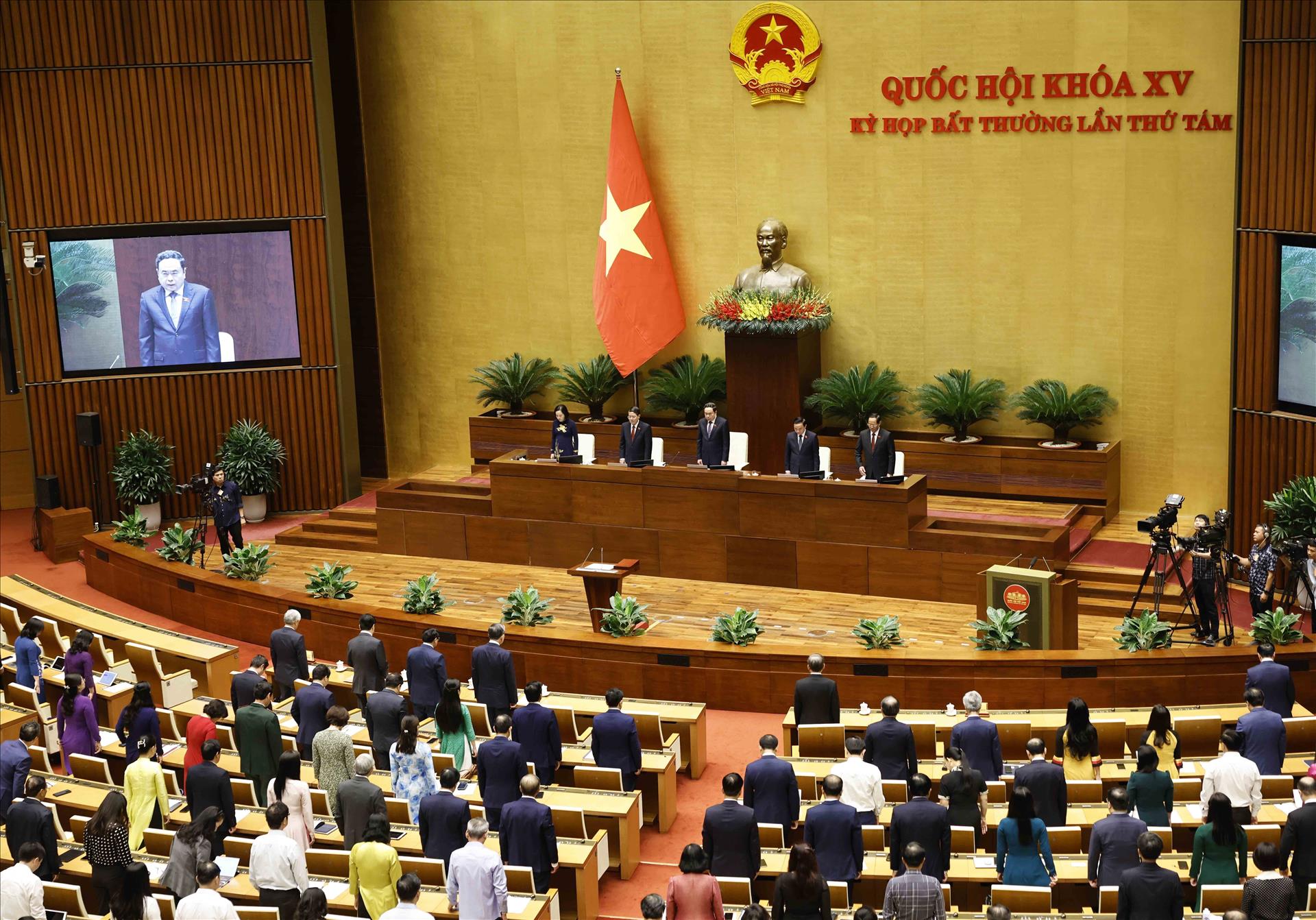 Phát biểu khai mạc, Chủ tịch Quốc hội Trần Thanh Mẫn nêu rõ: Căn cứ Hiến pháp nước Cộng hòa xã hội chủ nghĩa Việt Nam; căn cứ Luật Tổ chức Quốc hội; Nội quy Kỳ họp Quốc hội và ý kiến của cơ quan có thẩm quyền, Quốc hội khóa XV tổ chức Kỳ họp bất thường lần thứ 8 để xem xét quyết định về công tác nhân sự thuộc thẩm quyền của Quốc hội.