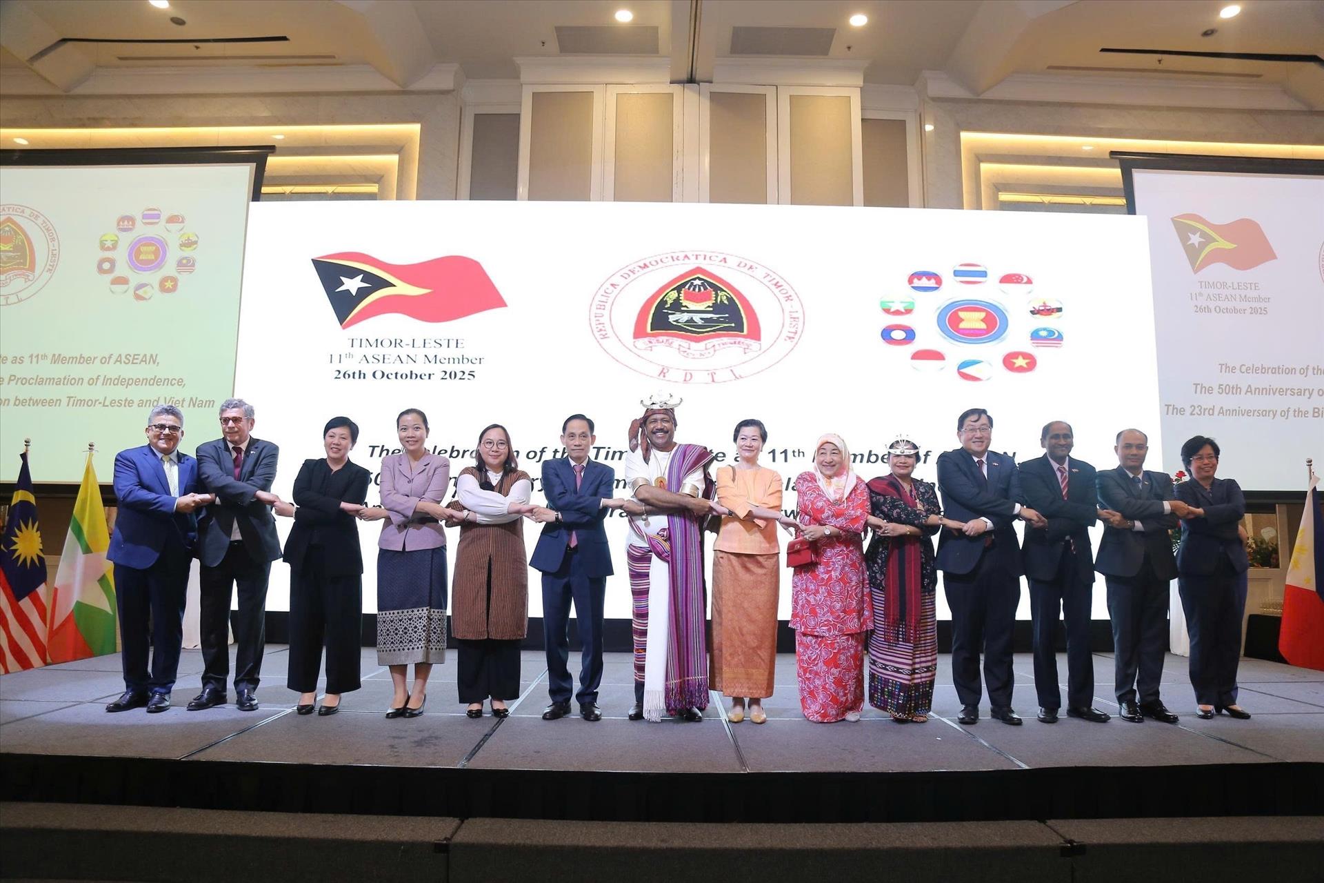 Tham dự buổi lễ, Trưởng đoàn Đại sứ ASEAN tại Việt Nam, Đại sứ Malaysia tại Việt Nam Tan Yang Thai vinh dự được chào đón thành viên mới nhất gia nhập ASEAN. Đại sứ Tan Yang Thai khẳng định, các nước thành viên sẽ tiếp tục hỗ trợ sự tham gia đầy đủ và hiệu quả của Timor-Leste trên tất cả các trụ cột - thông qua hợp tác thực tiễn, quan hệ đối tác giữa các tổ chức và các kết quả chung để duy trì đà phát triển, thu hẹp những khoảng cách còn tồn tại và đảm bảo sự sẵn sàng phù hợp với các nguyên tắc của ASEAN.