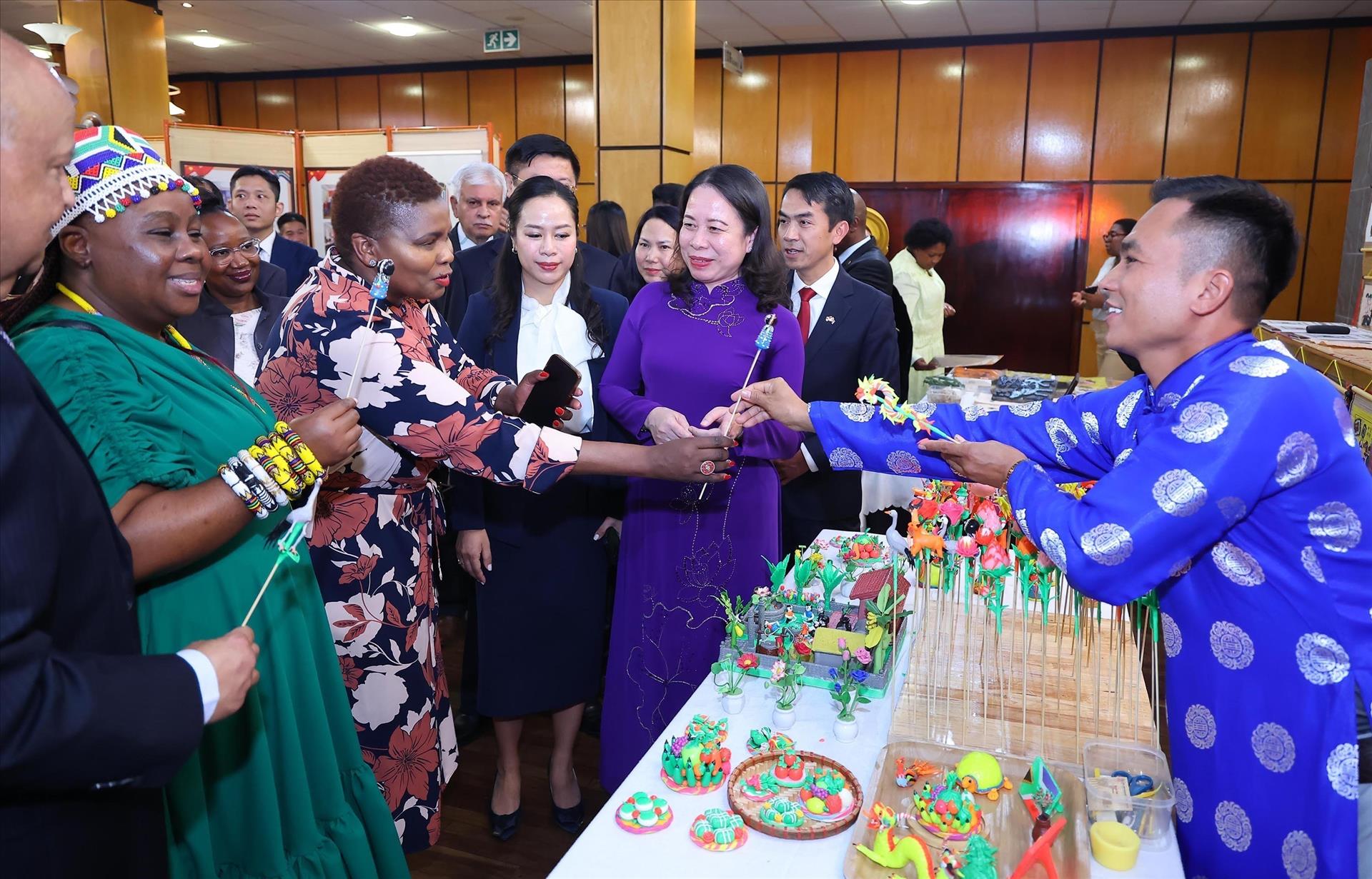 * Trước đó, trong cùng ngày, Phó Chủ tịch nước Võ Thị Ánh Xuân và Bộ trưởng Bộ Doanh nghiệp công Nam Phi Pravin Ghordan cùng Đại sứ Việt Nam tại Nam Phi Hoàng Sỹ Cường cắt băng khai trương Không gian văn hóa Việt Nam.