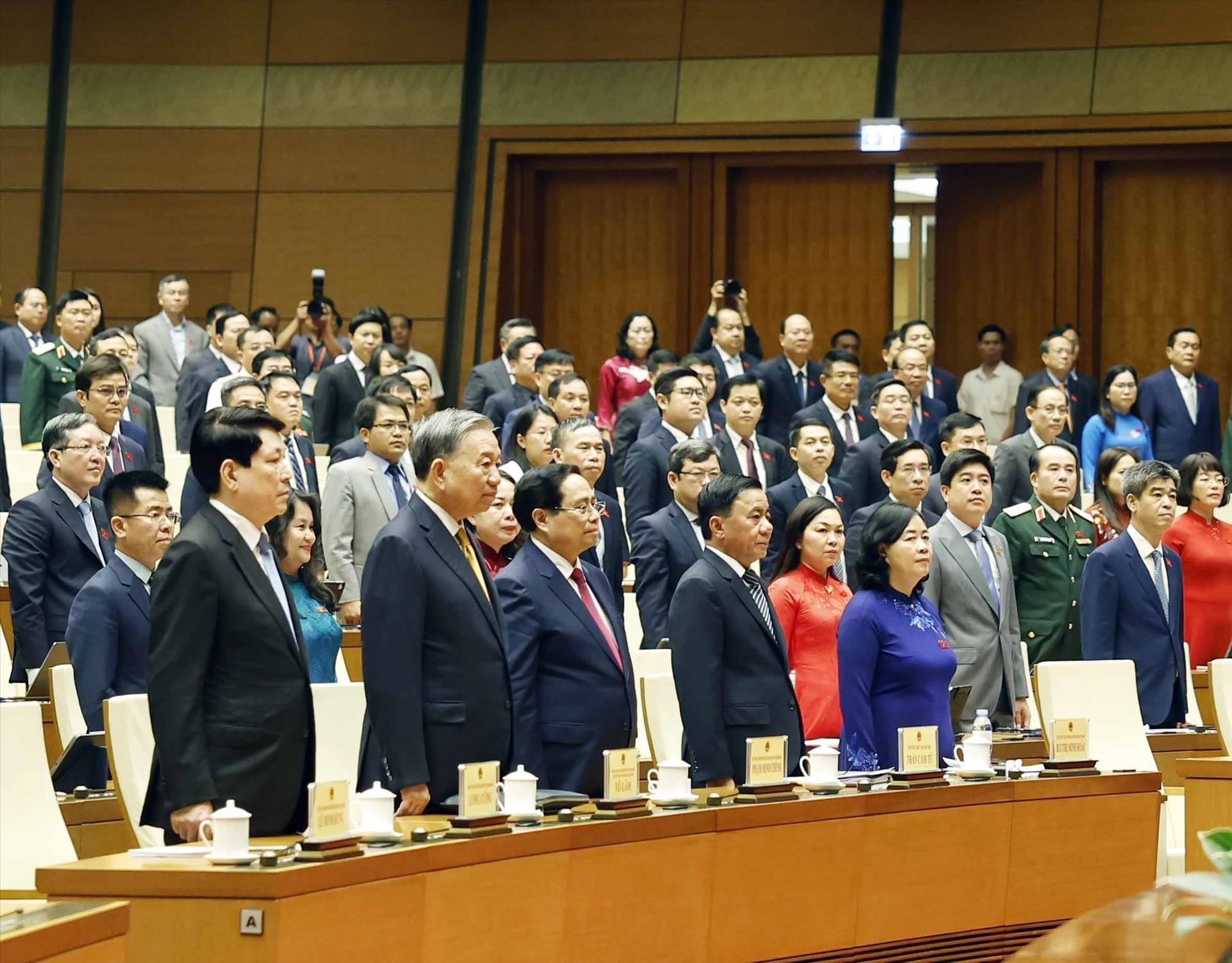 Tổng Bí thư, Chủ tịch nước Tô Lâm và các đại biểu tham dự Lễ tuyên thệ của Thủ tướng Chính phủ Lê Minh Hưng. Ảnh: Thống Nhất – TTXVN