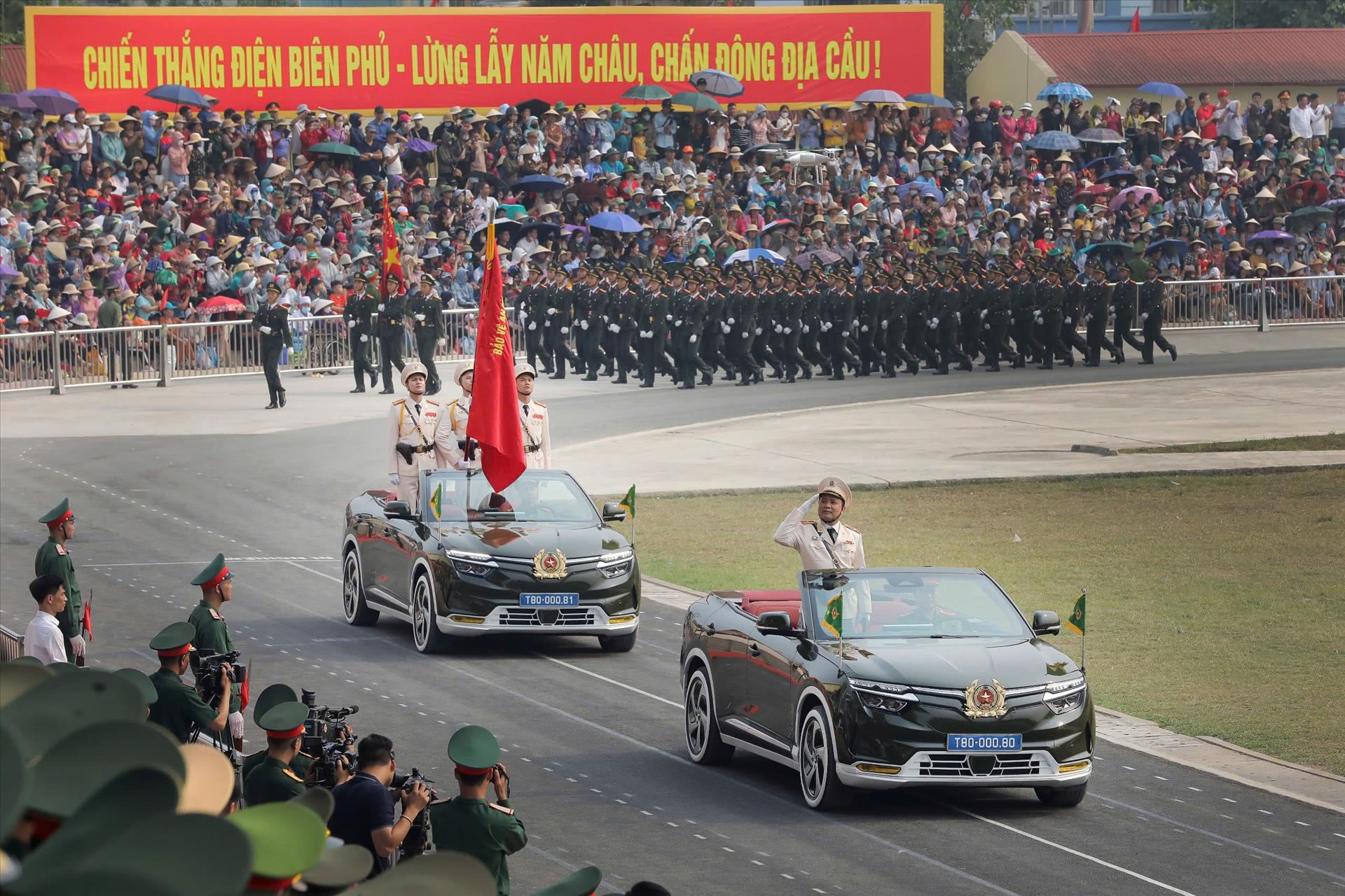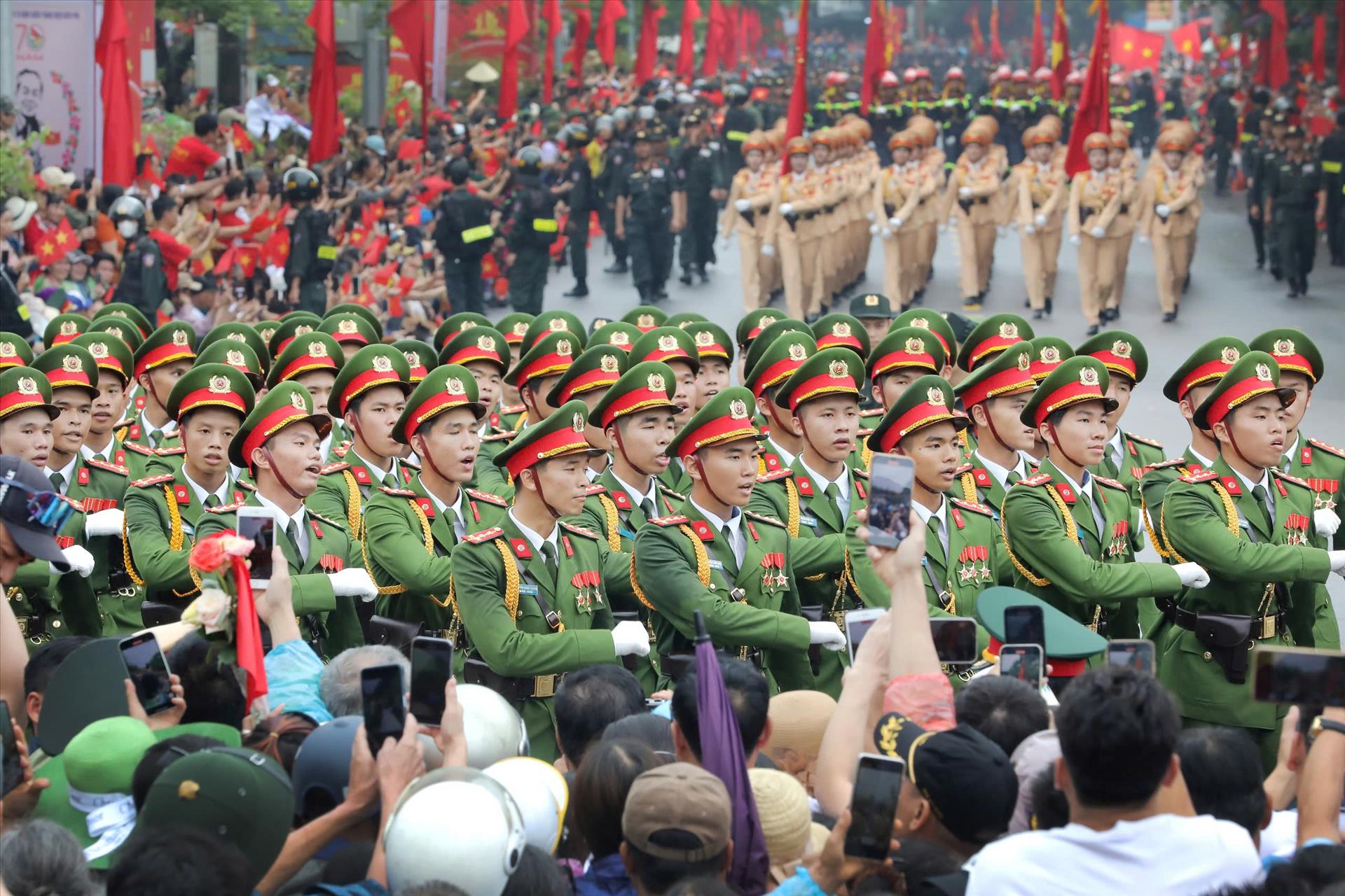 Khối Cảnh sát đi trong sự cổ vũ của người dân Điện Biên.