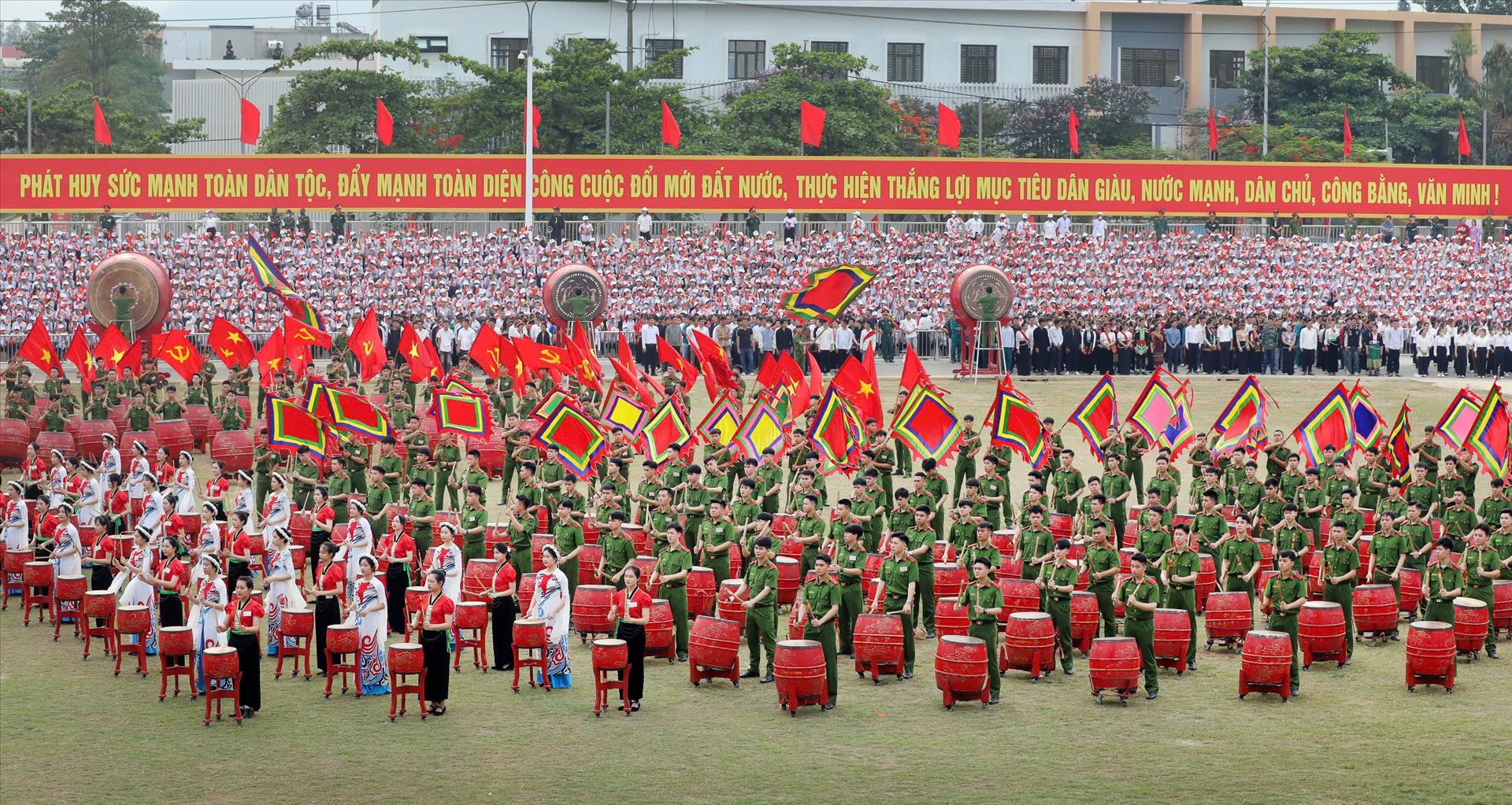 Khối trống hội với sự tham gia của hơn 1.000 học viên Học viện Cảnh sát nhân dân mở màn buổi lễ.