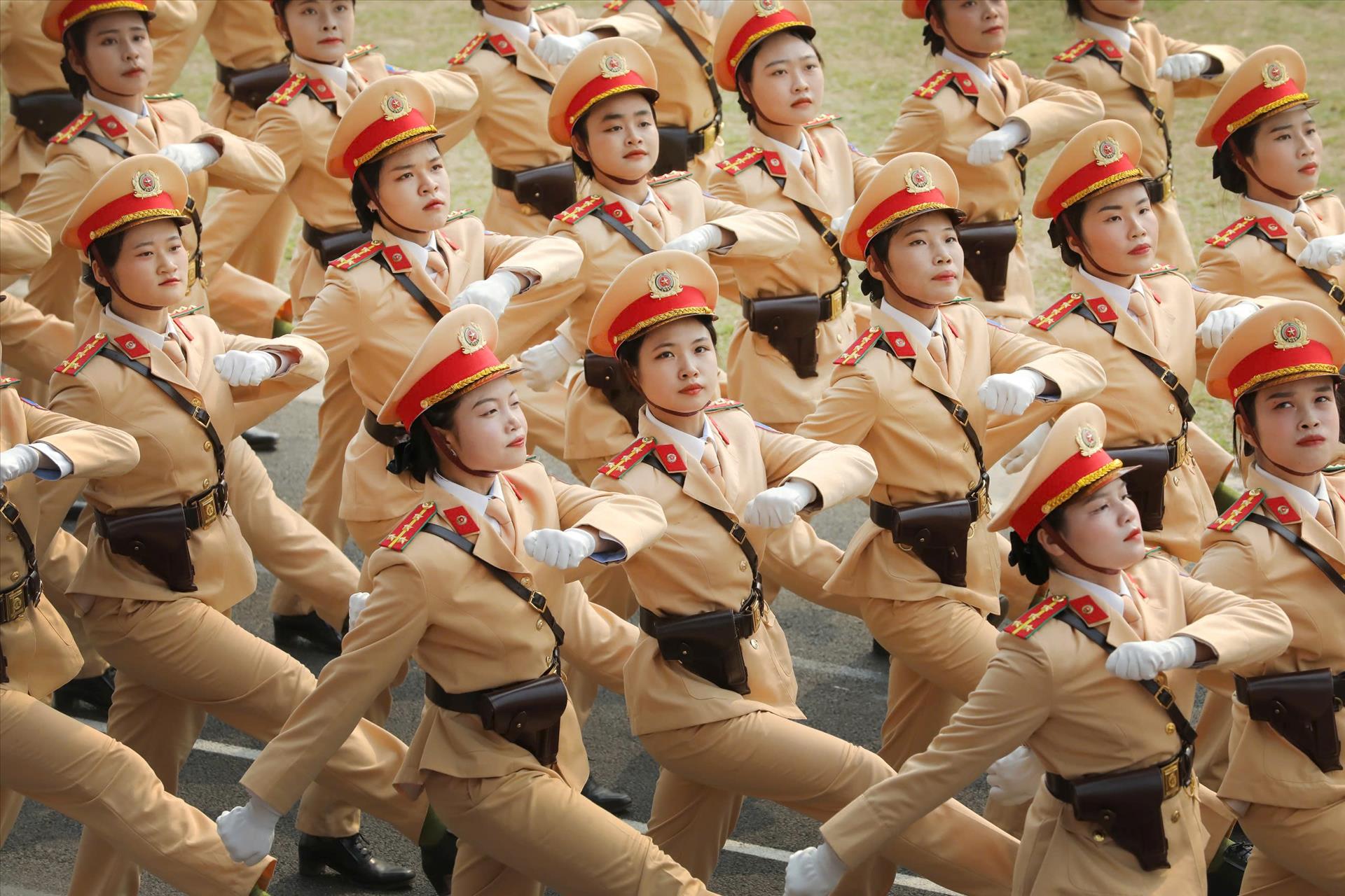 Khối nữ Cảnh sát giao thông nghiêm trang tiến qua lễ đài.