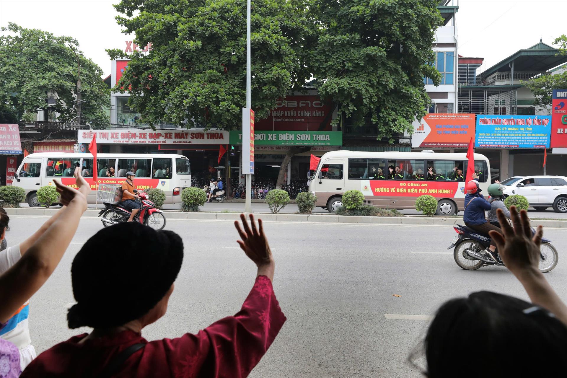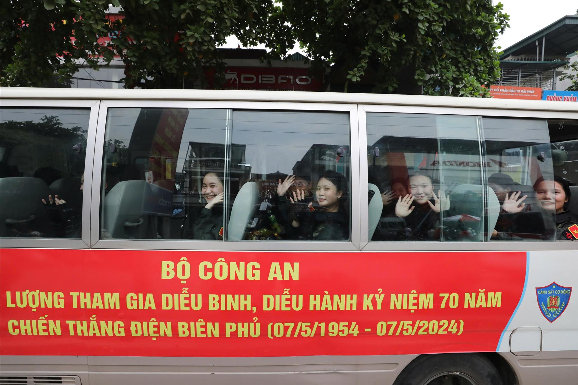 Khuôn mặt rạng ngời , cùng những cái vẫy tay chào của các chiến sĩ công an dành cho người dân thành phố Điện Biên.