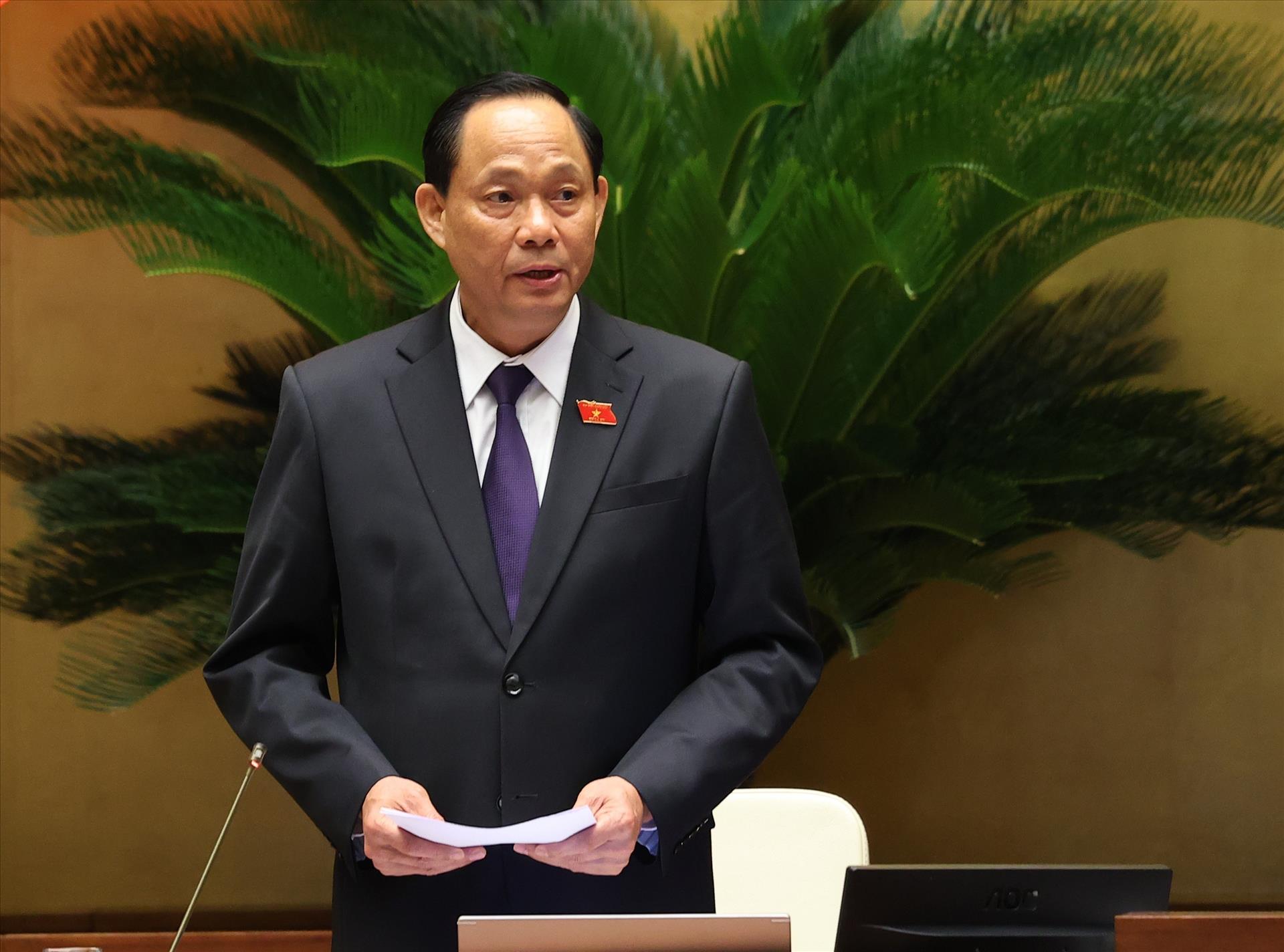 Chủ nhiệm Ủy ban Quốc phòng và An ninh của Quốc hội Lê Tấn Tới trình bày Báo cáo giải trình, tiếp thu, chỉnh lý dự thảo Luật Đường bộ. Ảnh: Văn Điệp - TTXVN