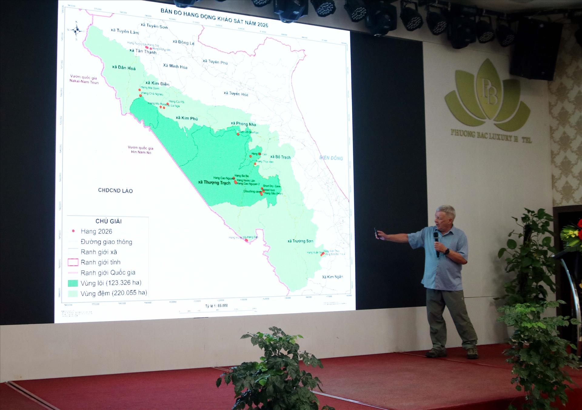 Đợt khảo sát được triển khai từ ngày 21/3 đến 11/4/2026 với sự tham gia của 10 chuyên gia hang động của Anh cùng lực lượng hướng dẫn viên, porter và người dân địa phương hỗ trợ hậu cần. Hoạt động khảo sát được thực hiện tại nhiều khu vực thuộc Vườn và vùng đệm, trải rộng trên các xã Phong Nha, Thượng Trạch, Kim Phú, Kim Điền, Tân Thành, Tuyên Lâm và Trường Sơn. Kết quả bước đầu cho thấy tiềm năng lớn về phát triển hệ thống hang động cũng như khai thác du lịch bền vững trong khu vực.