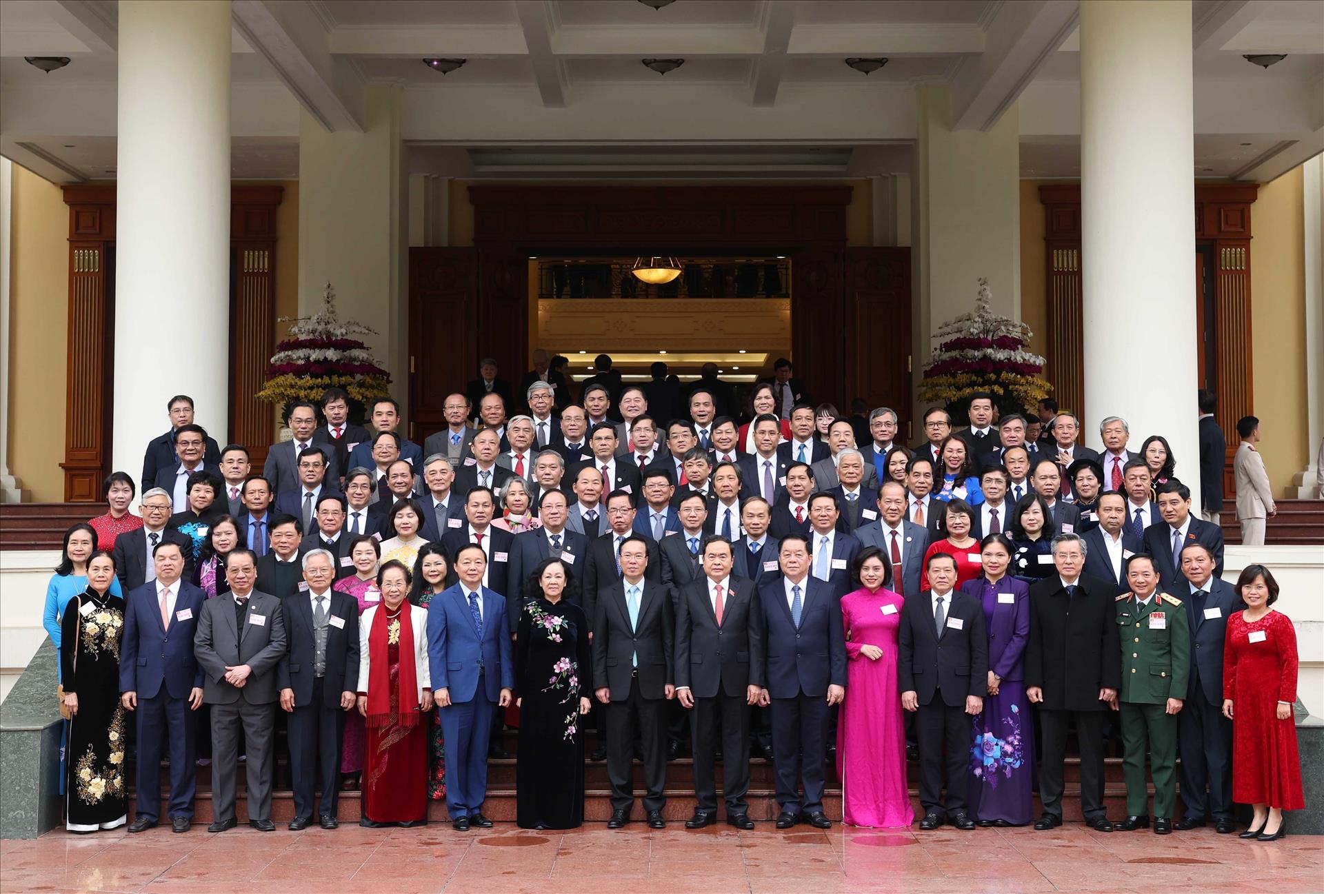 Thay mặt Lãnh đạo Đảng, Nhà nước, Chủ tịch nước Võ Văn Thưởng bày tỏ sự trân trọng, cảm ơn sâu sắc đến lớp lớp những thế hệ trí thức, nhà khoa học, văn nghệ sĩ - những người tài của đất nước đã cống hiến trí tuệ và tâm sức, lao động không mệt mỏi bằng tình yêu con người và đất nước, luôn đồng hành cùng Đảng, dân tộc và nhân dân, vượt qua muôn vàn khó khăn, thử thách để “đất nước ta chưa bao giờ có được cơ đồ, tiềm lực, vị thế, uy tín quốc tế như ngày nay”.