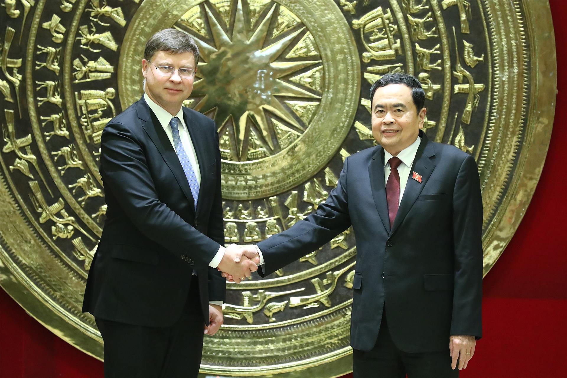 Phó Chủ tịch Thường trực Quốc hội Trần Thanh Mẫn tiếp Phó Chủ tịch Ủy ban châu Âu Valdis Dombrovski