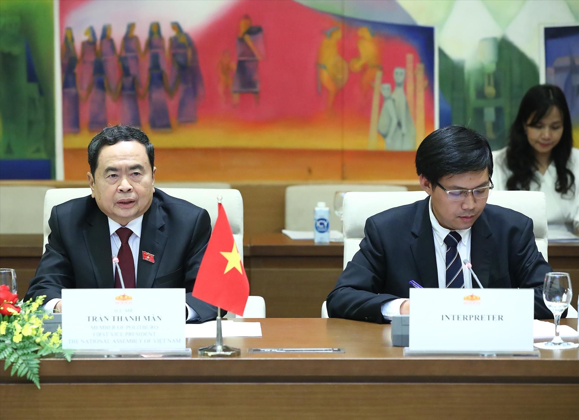 Tại buổi tiếp, Phó Chủ tịch Thường trực Quốc hội đánh giá cao những kết quả tích cực, quan trọng trong quan hệ Việt Nam - EU cũng như giữa Việt Nam với các nước thành viên EU trên các trụ cột: Chính trị, ngoại giao; kinh tế - thương mại - đầu tư; nông - lâm - ngư nghiệp; quốc phòng - an ninh; hợp tác phát triển; đối thoại...