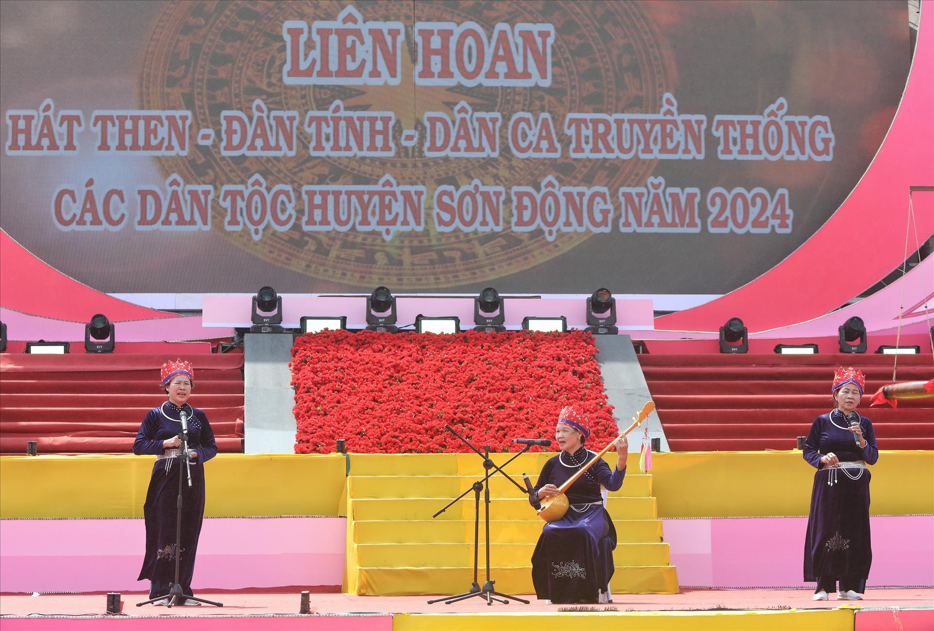 Dưới hình thức sân khấu hóa, với sự dàn dựng công phu, các nghệ nhân, diễn viên, nhạc công đã mang đến cho khán giả những tiết mục độc đáo, ấn tượng, đậm bản sắc dân tộc của đồng bào Tày, Nùng, Dao, Sán Chí như: Múa Chầu Then, Hát về bản em, Lời Then nhắn én; Khấn bản già quan, Hát về Bắc Giang…