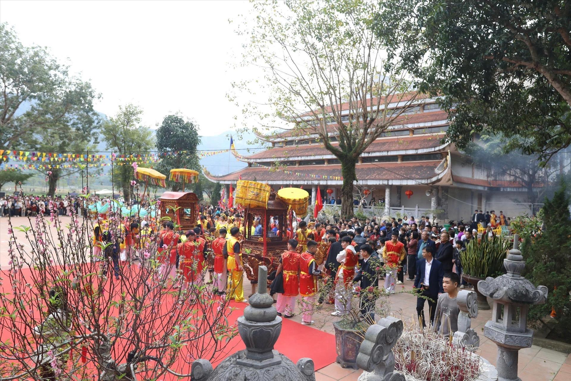 Trong không khí rộn ràng của những ngày đầu xuân, các nghi lễ truyền thống được tổ chức trang trọng như lễ rước kiệu, múa rồng, dâng hương cầu quốc thái dân an... Âm vang tiếng chiêng Mường hòa cùng sắc màu cờ hội, trang phục truyền thống đã tạo nên không gian lễ hội đậm đà bản sắc văn hóa dân tộc, góp phần gìn giữ và phát huy giá trị di sản địa phương.