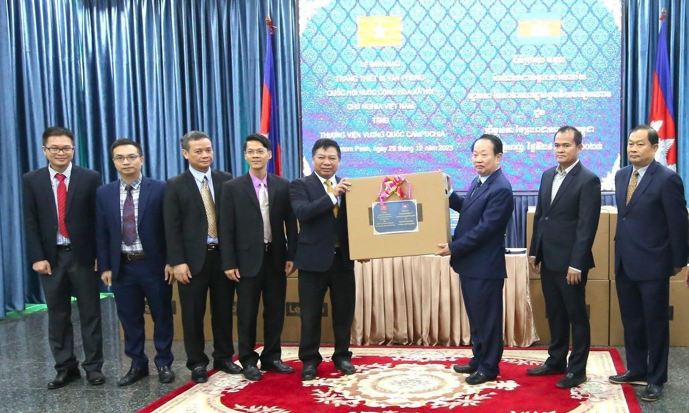 Theo phóng viên TTXVN tại Phnom Penh, tại sự kiện, được sự ủy quyền của Quốc hội Việt Nam, Đại sứ Việt Nam tại Vương quốc Campuchia Nguyễn Huy Tăng và Tổng Thư ký Thượng viện Campuchia Oum Sarith đã tiến hành nghi thức bàn giao và tiếp nhận các trang thiết bị văn phòng tổng trị giá 100.000 USD do Quốc hội Việt Nam tặng Thượng viện Campuchia.