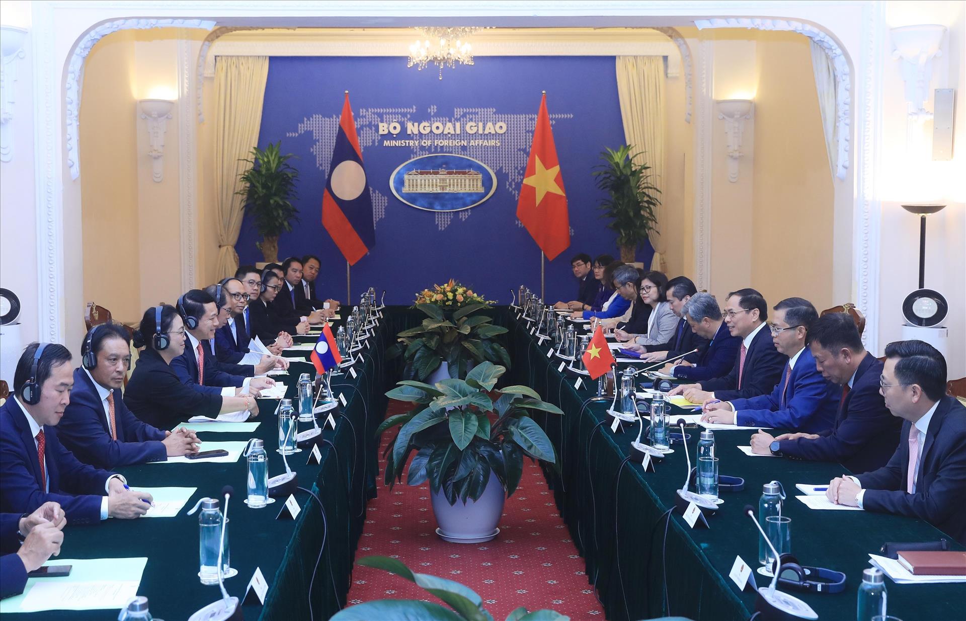 Phó Thủ tướng, Bộ trưởng Ngoại giao Saleumxay Kommasith nhất trí hai Bộ Ngoại giao cùng các ban, bộ, ngành và địa phương hai nước tiếp tục triển khai hiệu quả các thỏa thuận cấp cao và tiếp tục khẩn trương rà soát các cơ chế hợp tác song phương Việt Nam - Lào.