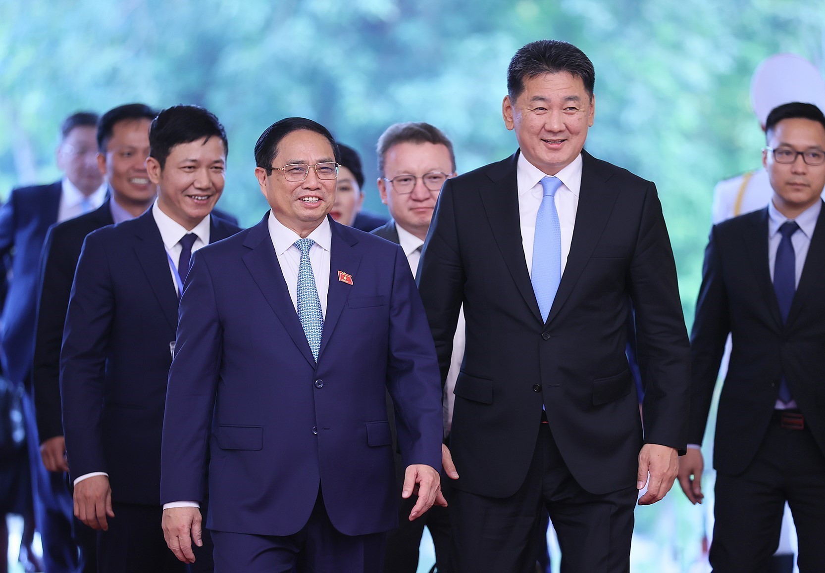 Thủ tướng Phạm Minh Chính nhiệt liệt chào mừng Tổng thống Mông Cổ Khurelsukh, Phu nhân và Đoàn đại biểu cấp cao Chính phủ Mông Cổ thăm cấp Nhà nước tới Việt Nam; đánh giá chuyến thăm mang ý nghĩa quan trọng, diễn ra trước thềm kỷ niệm 70 năm thiết lập quan hệ ngoại giao vào năm 2024 và đưa quan hệ hữu nghị truyền thống song phương sang giai đoạn phát triển mới, thực chất, hiệu quả.