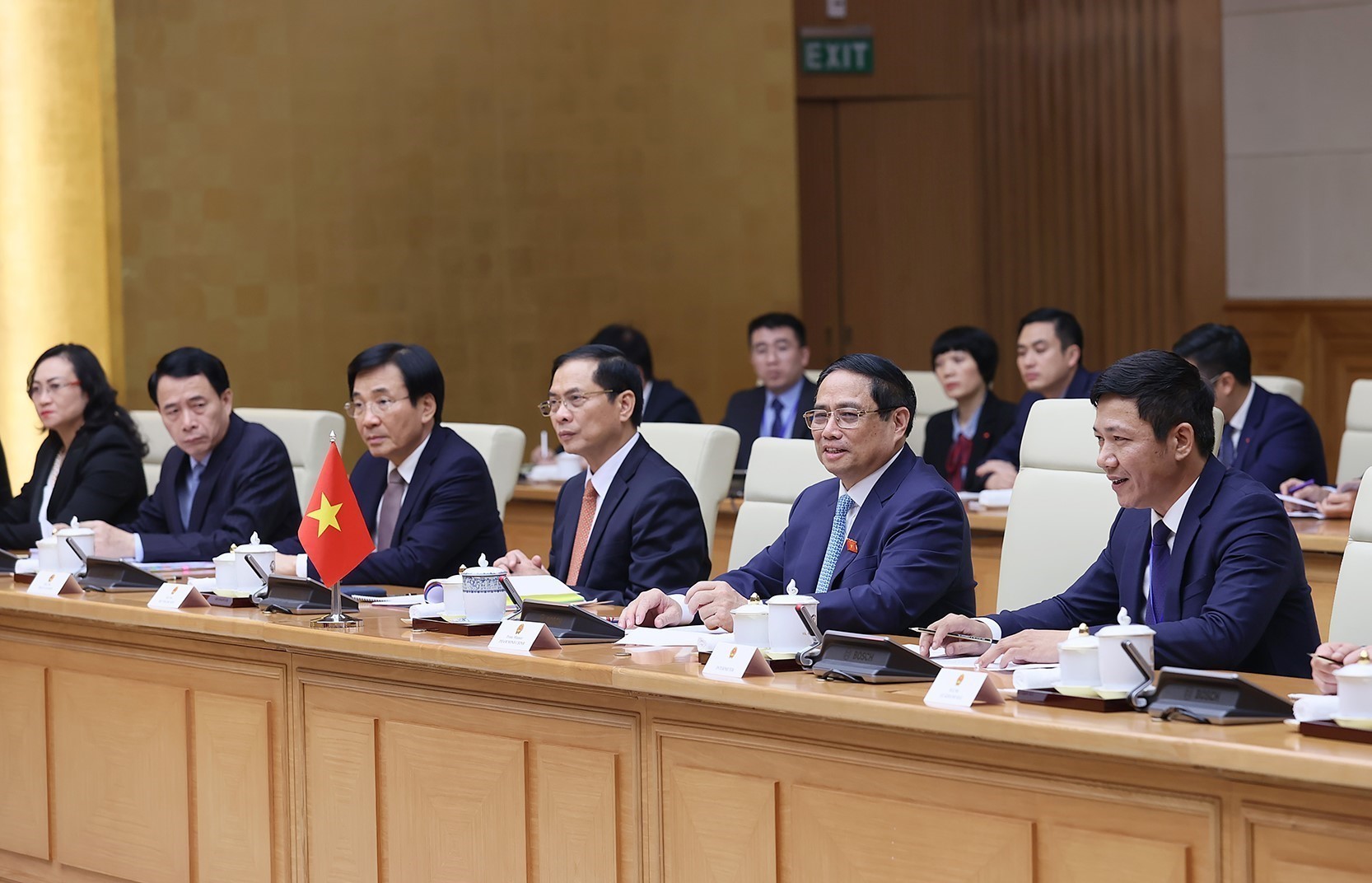 Thủ tướng Phạm Minh Chính đề nghị phát huy hơn nữa vai trò cơ chế Ủy ban liên Chính phủ Việt Nam - Mông Cổ; thúc đẩy hợp tác thực chất, hiệu quả giữa doanh nghiệp, địa phương và nhân dân hai nước; thúc đẩy xuất nhập khẩu hàng hóa song phương, mở cửa cho hàng hóa của nhau; tạo điều kiện cho các mặt hàng nông, thủy hải sản thế mạnh của Việt Nam vào thị trường Mông Cổ; đặt mục tiêu nâng gấp đôi kim ngạch thương mại song phương lên mức 200 triệu USD trong những năm tới.