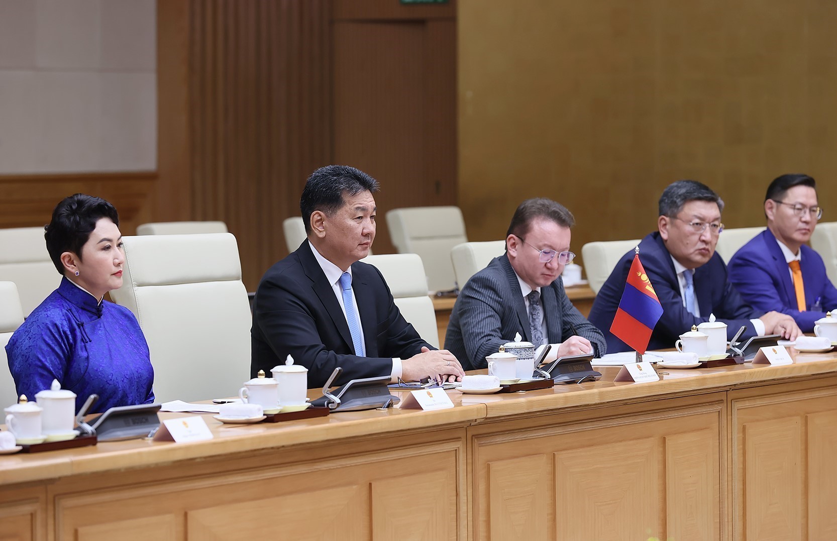 Tổng thống Mông Cổ cho biết, mong muốn tăng cường và mở rộng hợp tác hơn nữa với Việt Nam trên các lĩnh vực chính trị, quốc phòng, an ninh, kinh tế - thương mại, giáo dục, khoa học công nghệ, giao thông vận tải, logistics, văn hóa, thể thao, du lịch và giao lưu nhân dân, cũng như tại các diễn đàn, cơ chế đa phương; mong muốn hai bên thiết lập khuôn khổ quan hệ mới tương xứng với mối quan hệ tốt đẹp hai nước nhân dịp kỷ niệm 70 năm thiết lập quan hệ ngoại giao vào năm 2024.