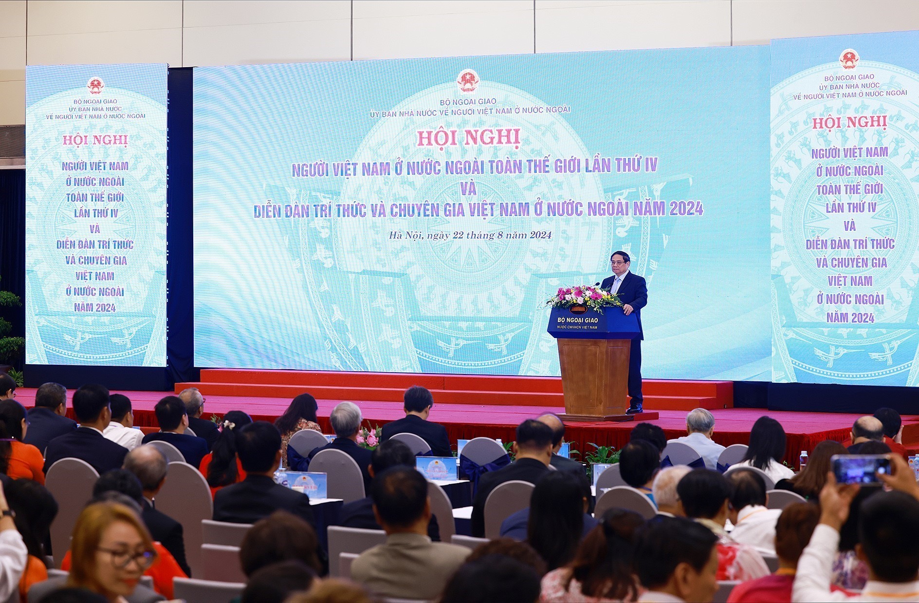 Nhắc lại lời căn dặn của Chủ tịch Hồ Chí Minh "Đoàn kết, đoàn kết, đại đoàn kết. Thành công, thành công, đại thành công", Thủ tướng Chính phủ chia sẻ: "Với tình yêu quê hương, đất nước, những giá trị văn hóa truyền thống và đương đại tốt đẹp, chúng ta mong muốn và tin tưởng rằng, cộng đồng người Việt Nam ở nước ngoài, bộ phận không tách rời của cộng đồng dân tộc Việt Nam, sẽ tiếp tục phát huy cao nhất bản lĩnh, trí tuệ, ngày càng phát triển vững mạnh, phát huy vai trò cầu nối Việt Nam với thế giới, kết hợp sức mạnh dân tộc với sức mạnh thời đại, xứng đáng với truyền thống con Lạc, cháu Hồng, hiện thực hóa khát vọng phát triển đất nước hùng cường, thịnh vượng, sánh vai với các cường quốc năm châu, như Chủ tịch Hồ Chí Minh kính yêu hằng mong ước".