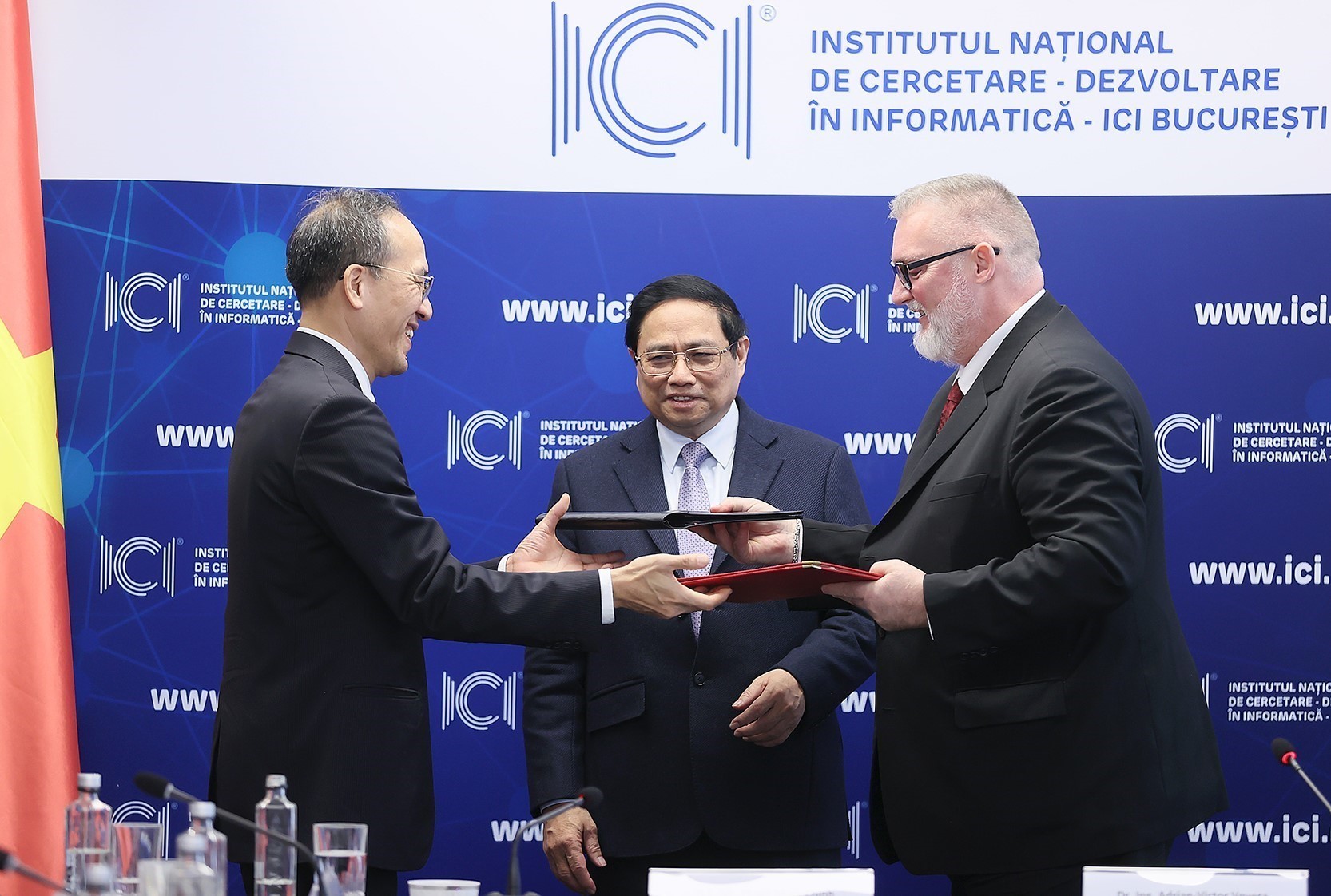 Cũng tại cuộc làm việc, trước sự chứng kiến của Thủ tướng Chính phủ Phạm Minh Chính, Viện Nghiên cứu và Phát triển tin học quốc gia Romania và Viện Công nghệ số và chuyển đối số quốc gia Việt Nam đã trao Biên bản ghi nhớ về hợp tác./.