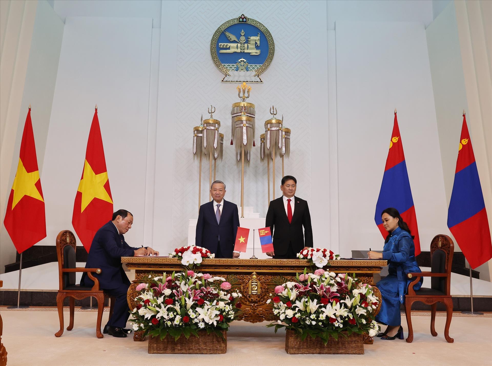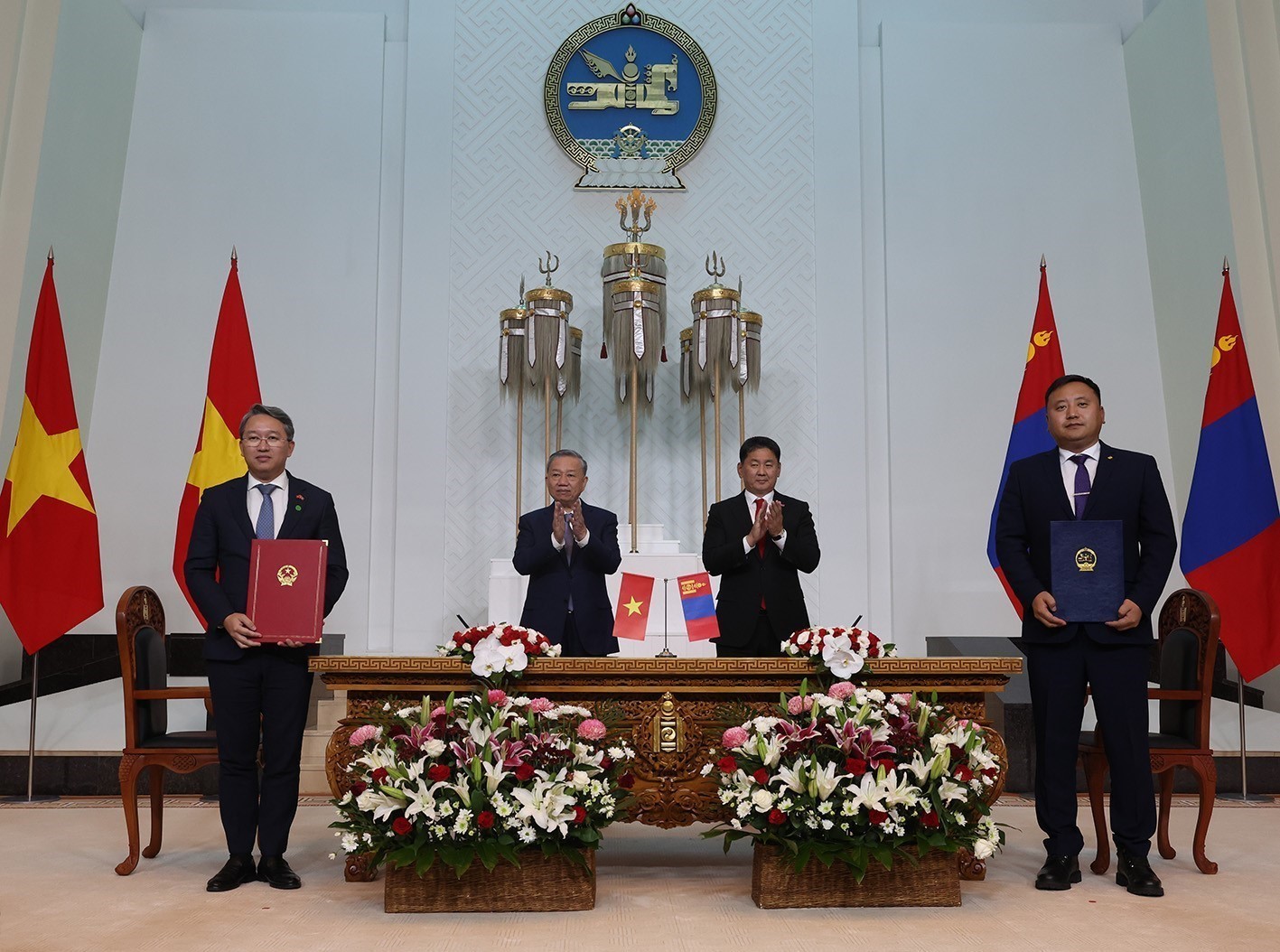 Tổng Bí thư, Chủ tịch nước Tô Lâm và Tổng thống Mông Cổ Ukhnaagiin Khurelsukh chứng kiến Lễ ký các văn kiện hợp tác