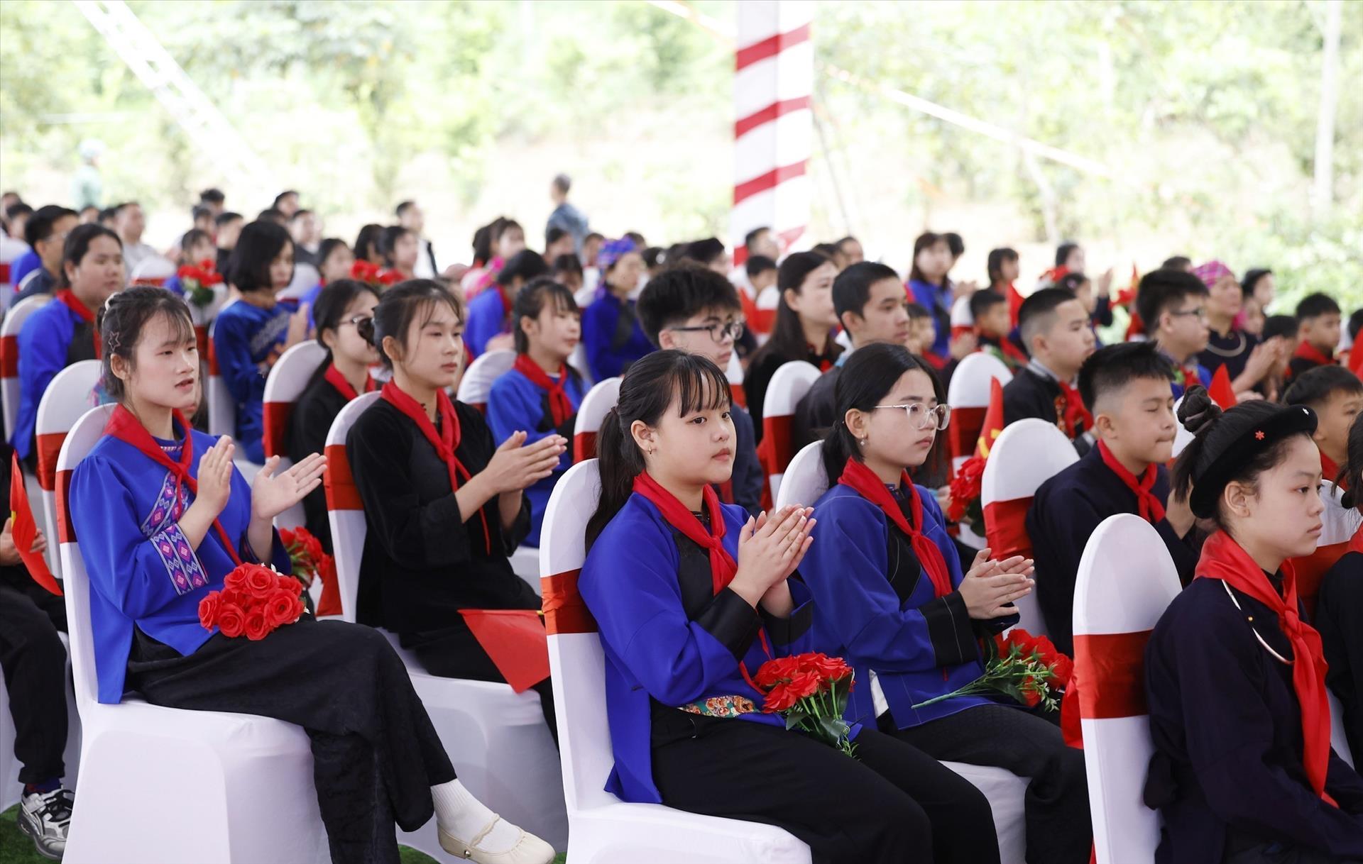 Nhắc lại lời dạy của Bác Hồ về vai trò của học tập đối với tương lai đất nước: "Non sông Việt Nam có trở nên tươi đẹp hay không, dân tộc Việt Nam có bước tới đài vinh quang để sánh vai với các cường quốc năm châu được hay không, chính là nhờ một phần lớn ở công học tập của các em", Tổng Bí thư mong muốn, các cháu không chỉ học tập thật giỏi mà còn nuôi dưỡng ước mơ, khát vọng vươn lên, có mục tiêu sống, lý tưởng sống, lòng yêu nước, yêu quê hương biên giới và tự hào về truyền thống của quê hương.