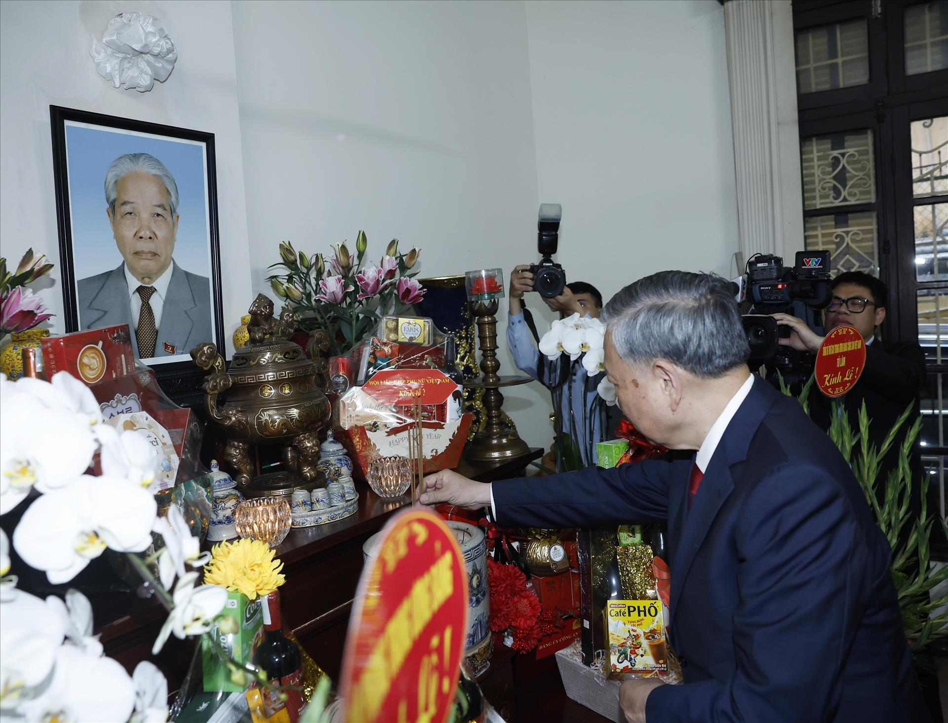 Trong không khí ấm áp của những ngày giáp Tết cổ truyền dân tộc, Tổng Bí thư Tô Lâm ân cần thăm hỏi tình hình đời sống, công tác của thân nhân gia đình các đồng chí nguyên Tổng Bí thư: Trường Chinh, Lê Duẩn, Đỗ Mười, Lê Khả Phiêu, Nguyễn Phú Trọng; mong muốn các gia đình tiếp tục phát huy truyền thống, không ngừng nỗ lực phấn đấu đạt nhiều thành tích trong công tác, tích cực đóng góp xây dựng đất nước.