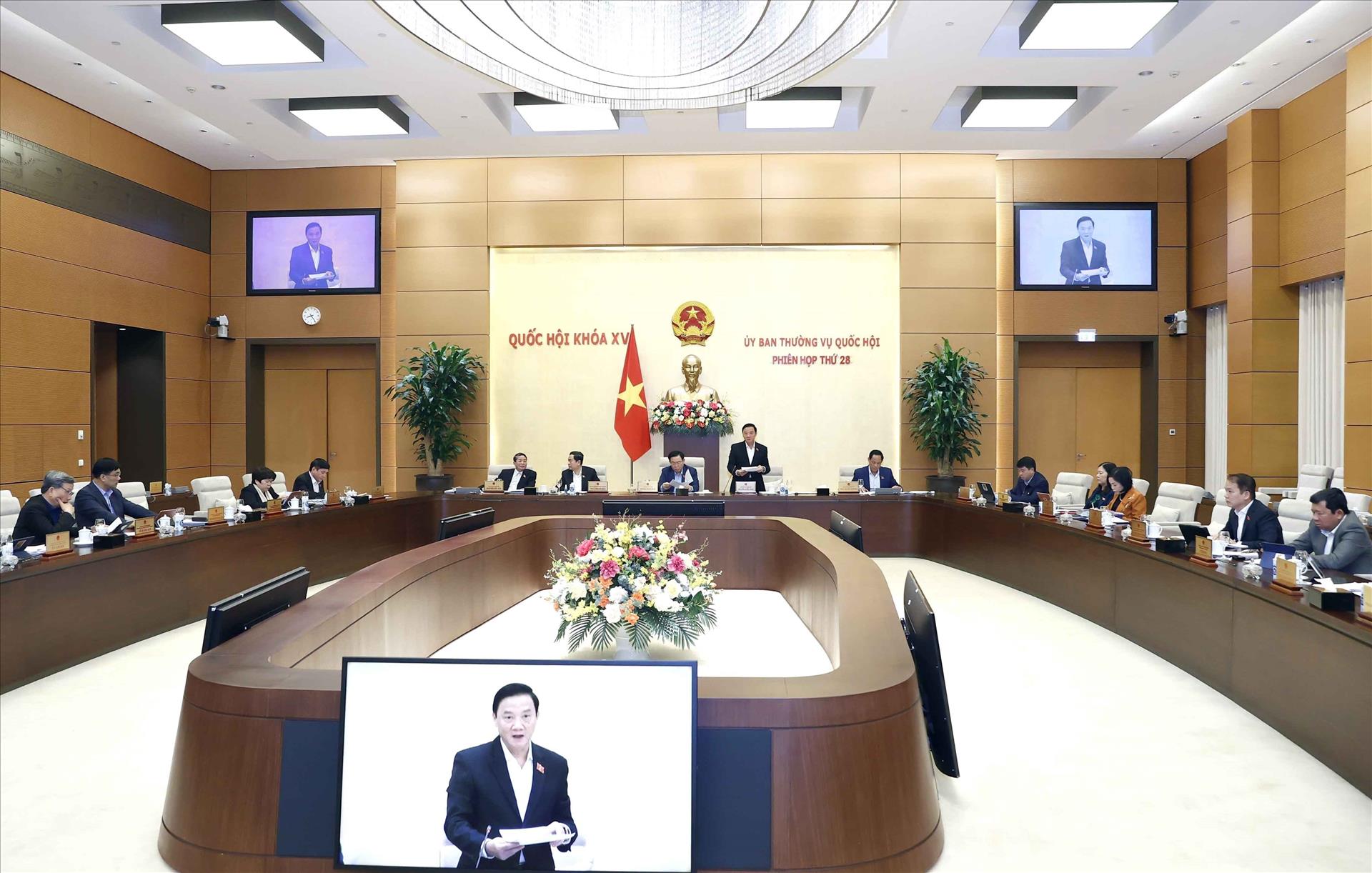 Tiếp tục Phiên họp thứ 28, sáng 18/12/2023, tại Nhà Quốc hội, Uỷ ban Thường vụ Quốc hội xem xét đề nghị bổ sung một số dự án luật vào Chương trình xây dựng luật, pháp lệnh năm 2024 và xem xét việc phân bổ, điều chỉnh kế hoạch đầu tư vốn ngân sách trung ương năm 2023 giữa các Bộ, cơ quan trung ương và địa phương; việc giao kế hoạch vốn Chương trình phục hồi và phát triển kinh tế - xã hội, điều chỉnh, bổ sung Kế hoạch đầu tư công trung hạn vốn ngân sách trung ương giai đoạn 2021 – 2025 của Bộ, cơ quan trung ương và địa phương.