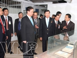 Thủ tướng Nguyễn Tấn Dũng thăm khu di tich lich sử Viêng Xay. (Ảnh: Hoàng Chương/Vietnam+)