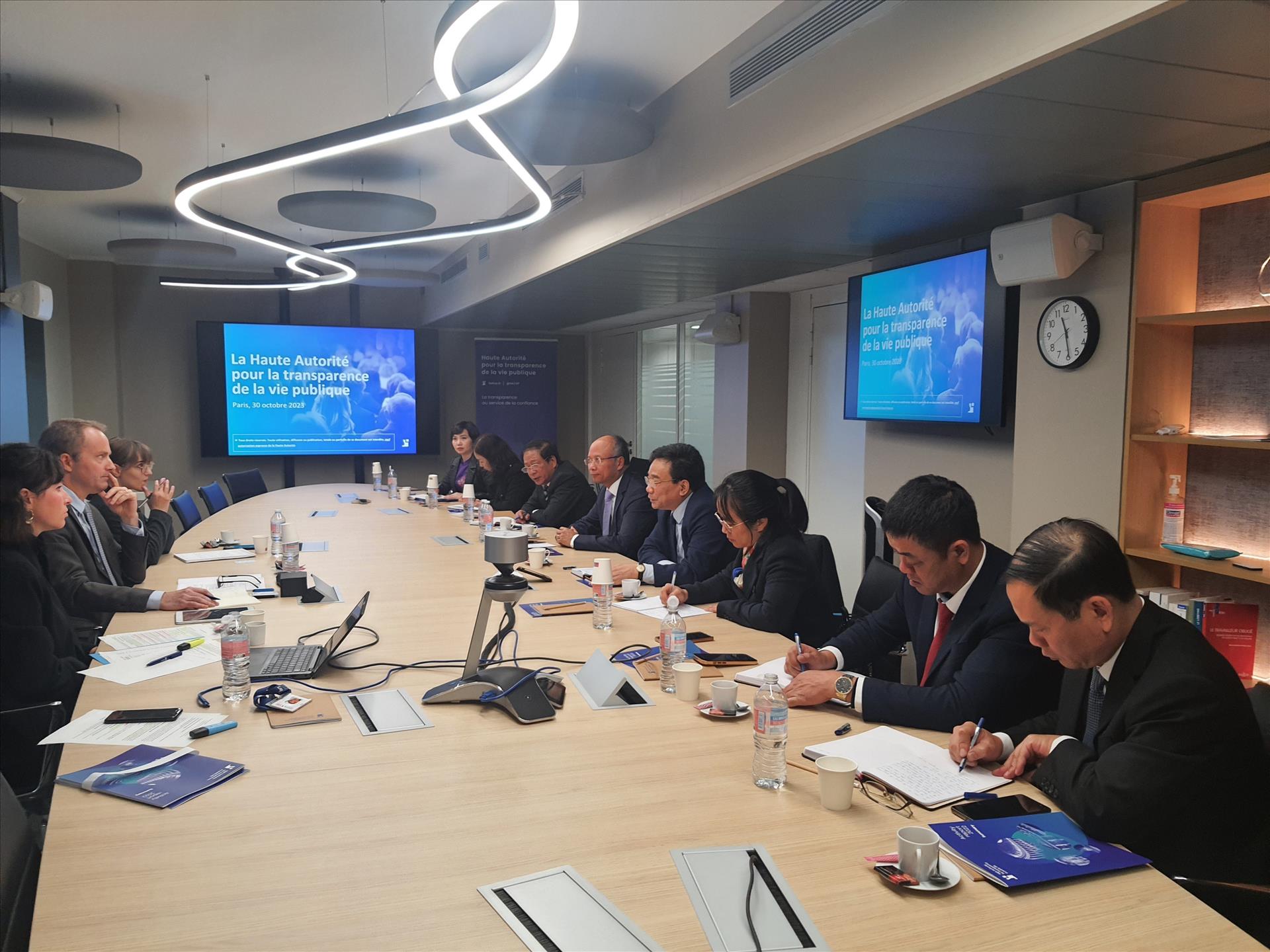 Đoàn đã có các buổi làm việc với lãnh đạo cơ quan cấp cao về minh bạch công của Pháp (HATVP), Ban Tài chính và hoạt động doanh nghiệp của Tổ chức Hợp tác và phát triển kinh tế (OECD), Vụ đạo đức nghề nghiệp và quy chế đại biểu thuộc Văn phòng Quốc hội Pháp, lãnh đạo Viện Dịch vụ công quốc gia Pháp INSP (tiền thân là Học viện Hành chính quốc gia Pháp ENA) và Tổng Vụ Hành chính công thuộc Bộ Chuyển đổi và công vụ Pháp.